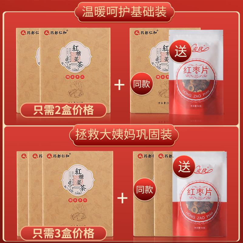 Renhe brown sugar ginger tea Physiological period Qi and blood ginger sugar conditioning Brown sugar pieces small bags of ginger juice Female palace cold