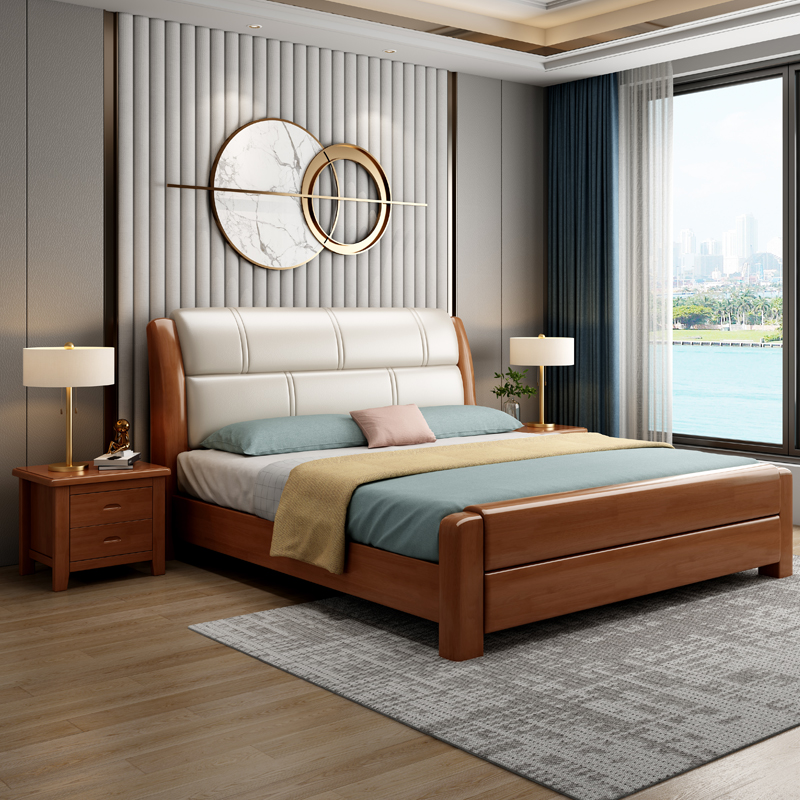 Solid wood bed modern minimalist 18 meters oak master bedroom wedding bed double bed 1 5 soft foreskin bed high box storage