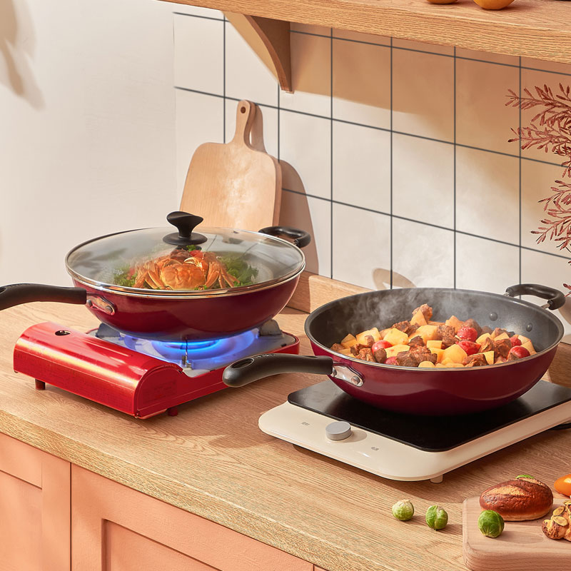(30cm purple)Induction cooker universal send original wooden shovel (32cm purple)Induction cooker universal send original wooden shovel (34cm red) Induction cooker universal send original wooden shovel