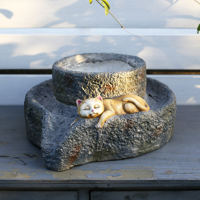 Cat Stone Mill Flowerpot Creative Garden Terrace Courtyard Balcony Layout Chinese Farmhouse Pastoral Style Decoration Ornaments