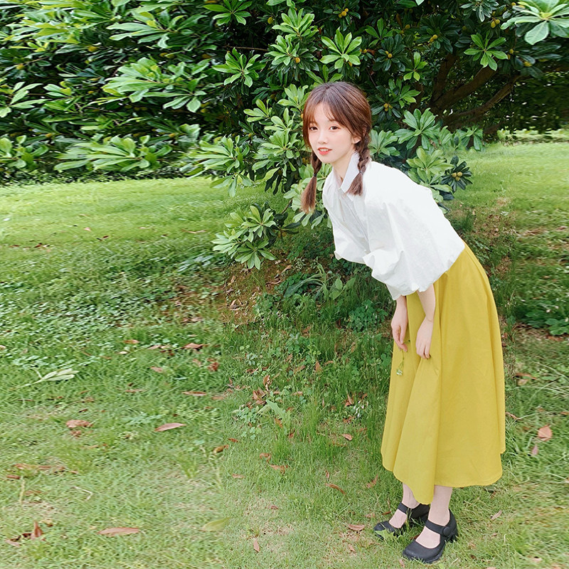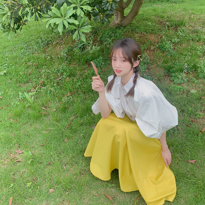 The Little Deer DEER Foam Eve Your Look Classic Wide Sleeve Shirt Yellow Half Skirt Suit