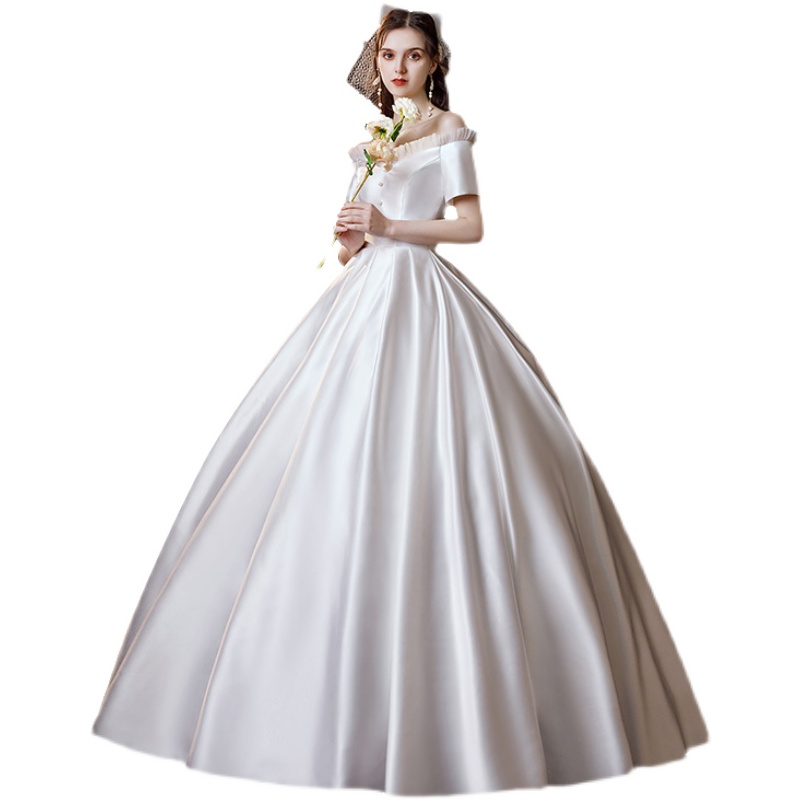 Satin main wedding dress 2022 The new French brides are lined with a shoulder to cover the demortals for the winter.