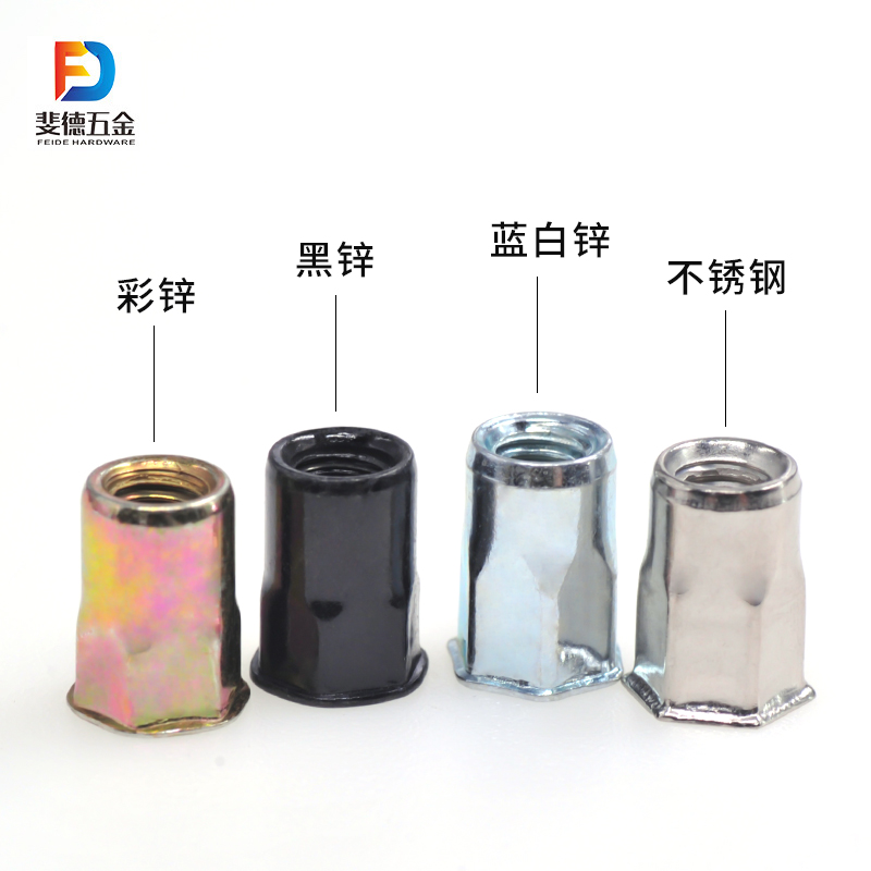 Small side half hexagonal pull riveting nut yellow zinc blue white zinc black zinc sunken head lahat full iron galvanized M3-M12