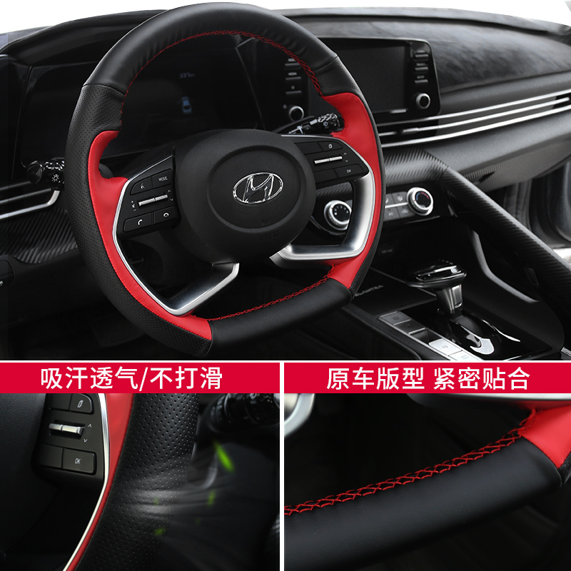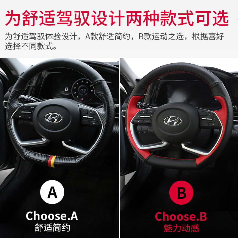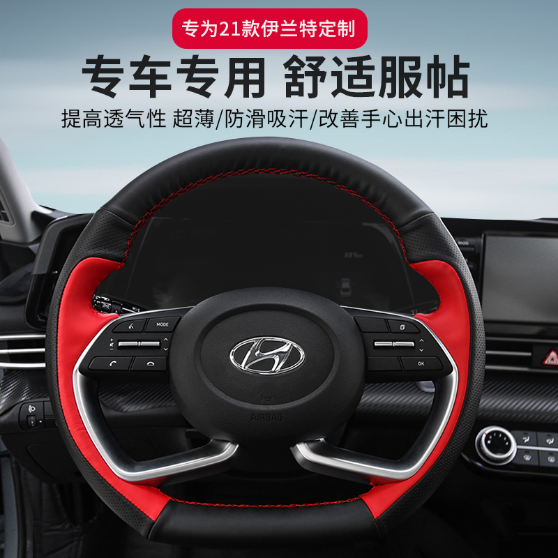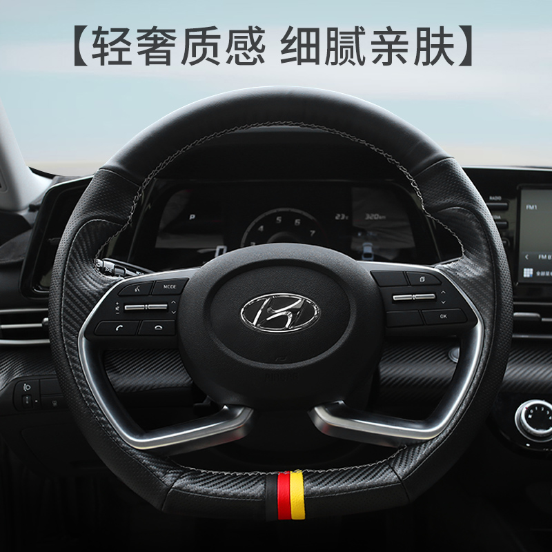 Suitable for 21 Elantra hand-stitched steering wheel covers modified to decorate the seventh-generation car interior carbon fiber pattern handle cover