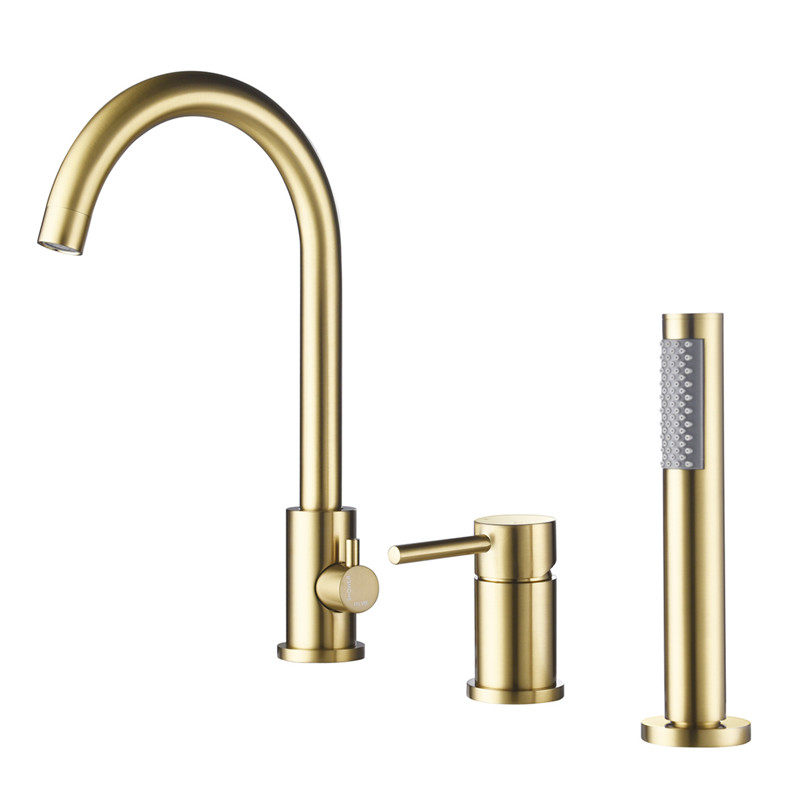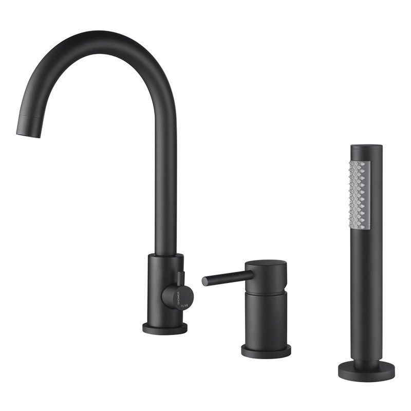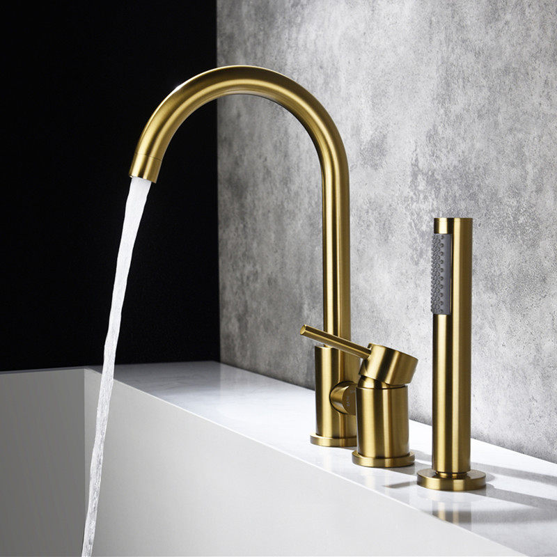 Bathtub Tap Full Copper Swivel Three Holes Two-piece Type Cylinder Side Shower Shower Shower wire drawing gold double cut black hot and cold single handle
