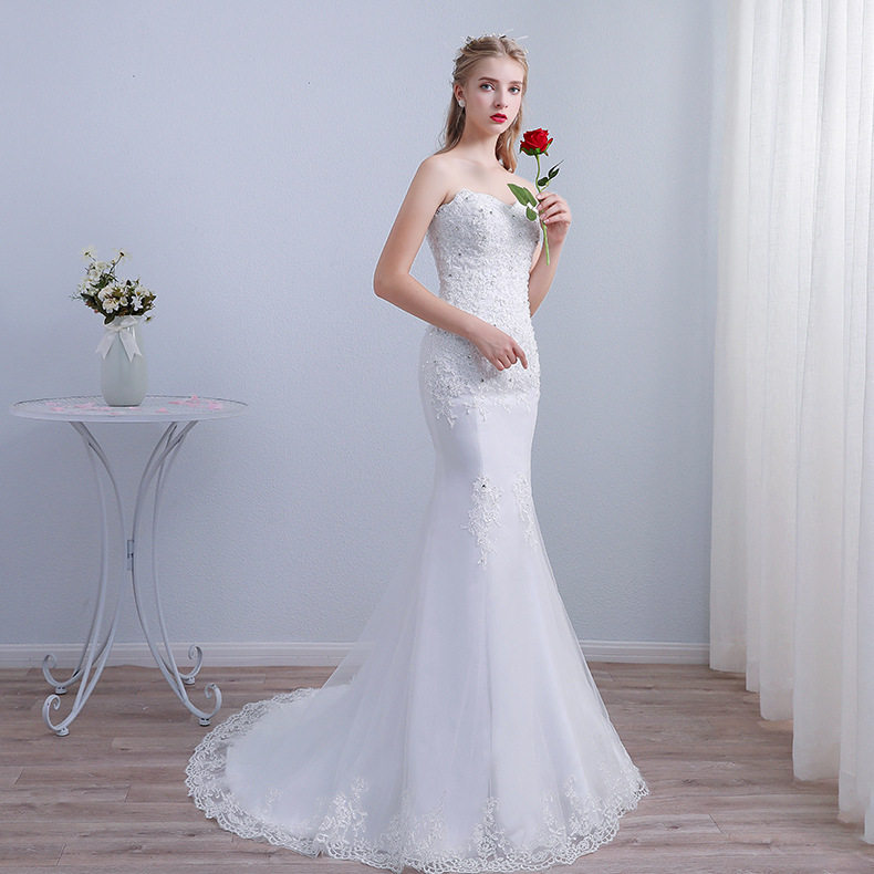 Mermaid wedding dress 2021 new white tail princess dream bride tube top simple Korean outdoor temperament