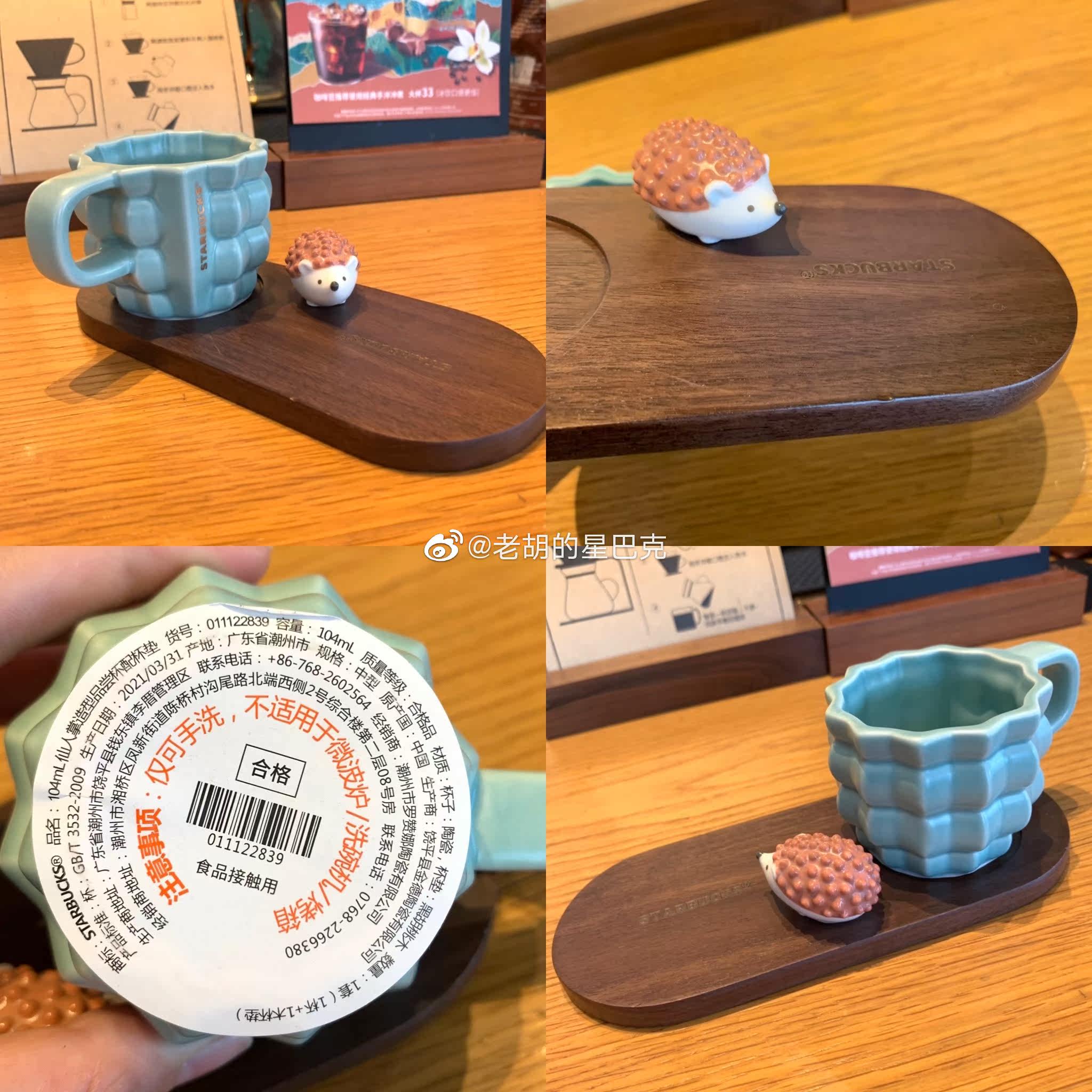 Starbucks 2021 Cactus Styling Mini Tasting Ceramic Mug Hedgehog Wooden Cup Mat Creative Birthday Present