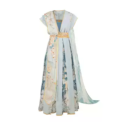Han Fengyin (Shura) Tang made back I-shaped pleated skirt printed embroidery women's style spring, summer and autumn Hanfu silk original
