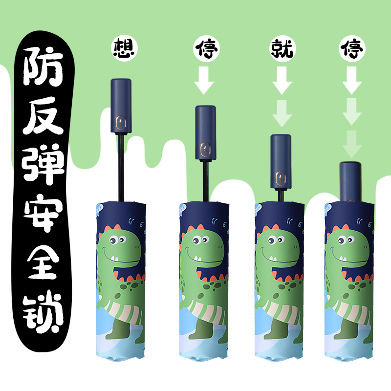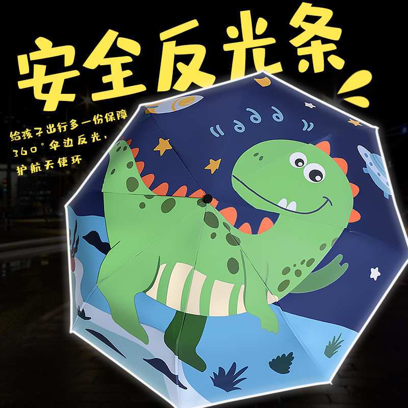 Tyrannosaurus Rex Safety Children's Umbrella Fully Automatic Umbrella Rain and Shine Kindergarten Elementary School Students Light Ride Portable School Umbrella