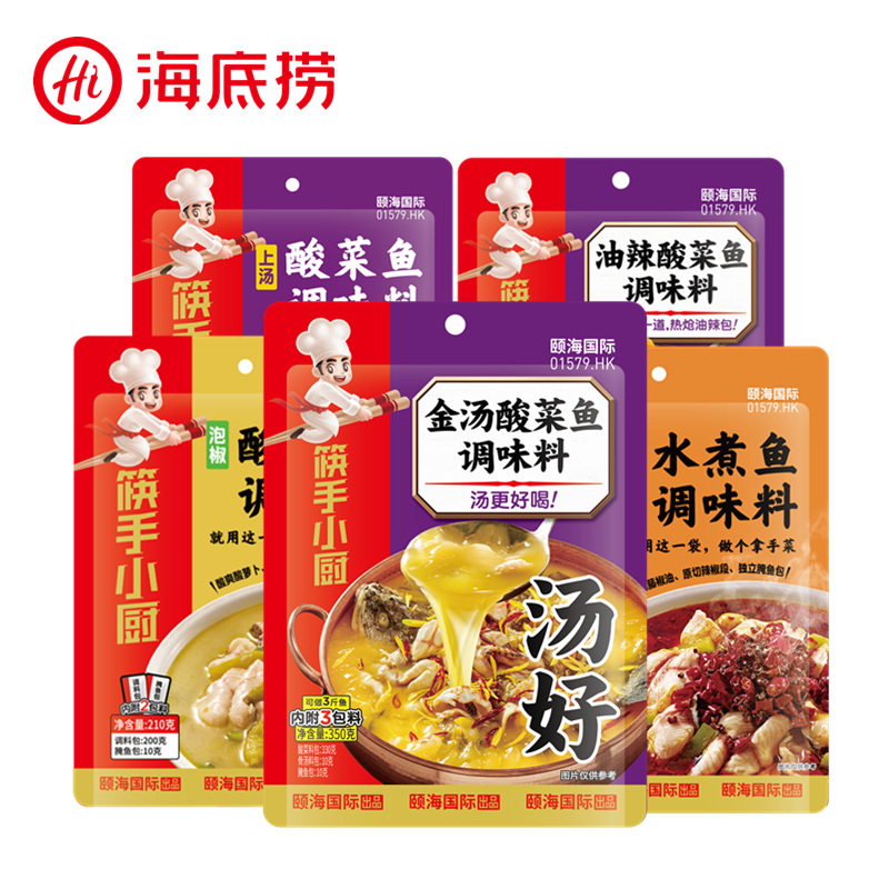260g package of fish in sour soup with pickled peppers 360g package of sauerkraut fish in upper soup 210g package of boiled fish 350g package of pickled vegetable fish in golden soup 260g package of fatty beef in sour soup