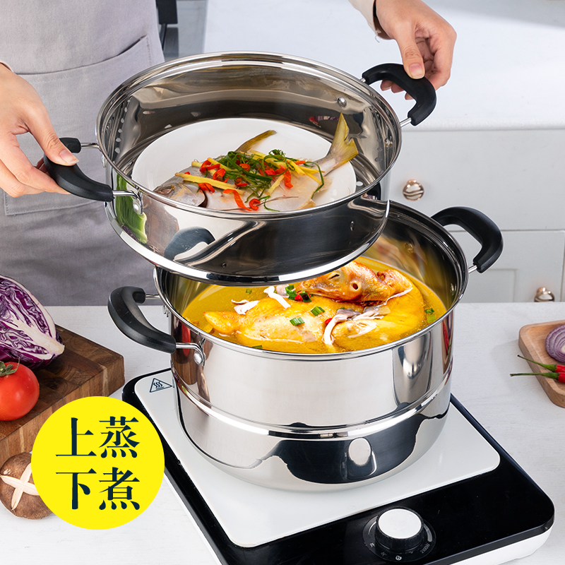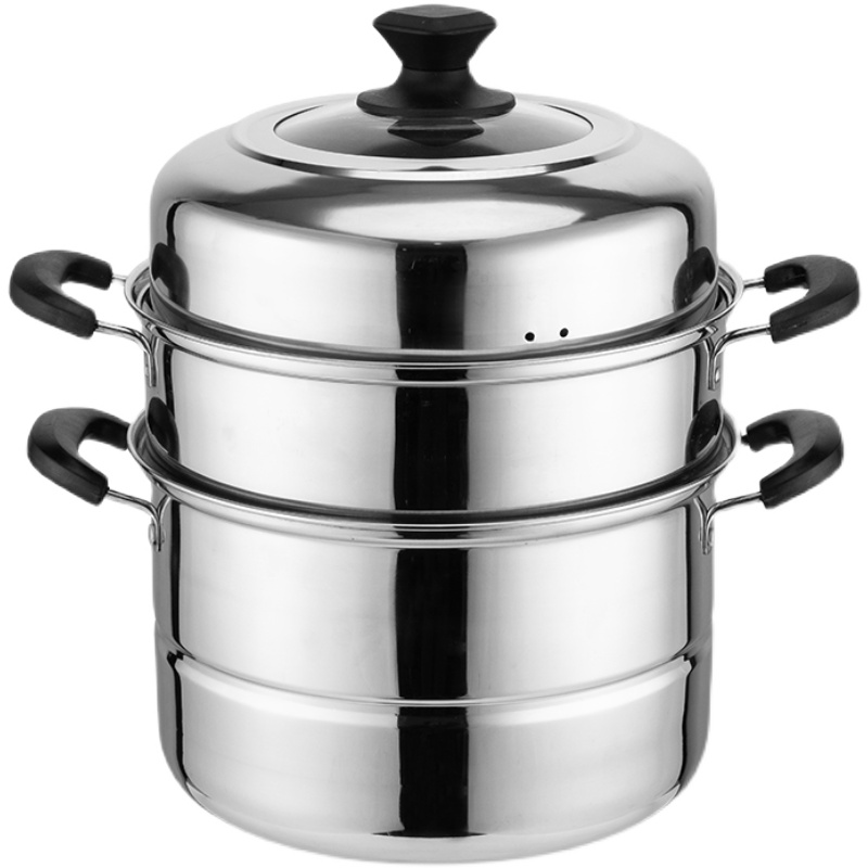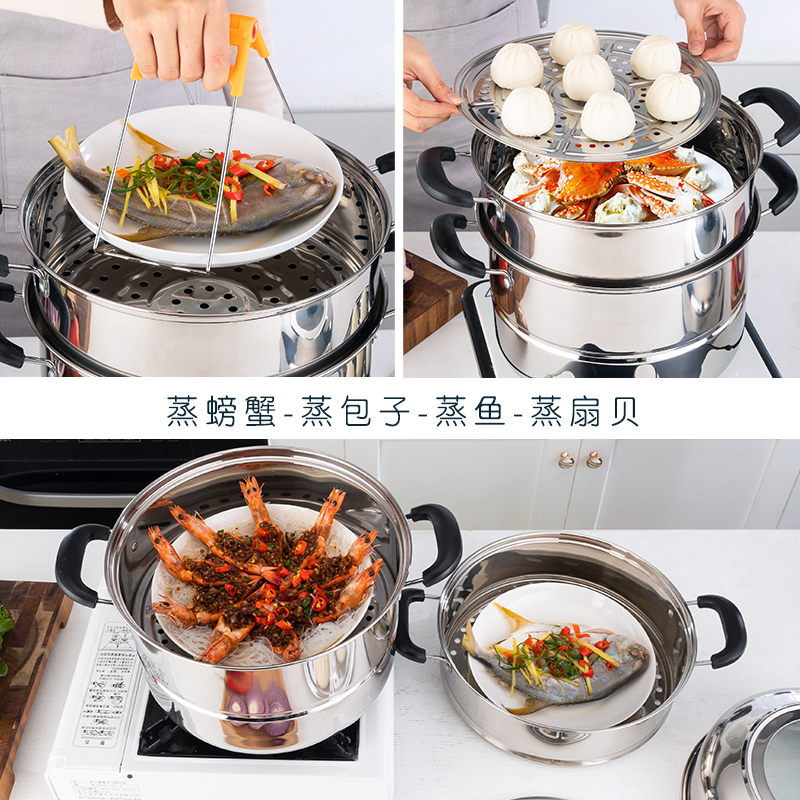 Steamer stainless steel household thickened double-layer three-layer steamer steamed buns steamed buns induction cooker gas stove large pot
