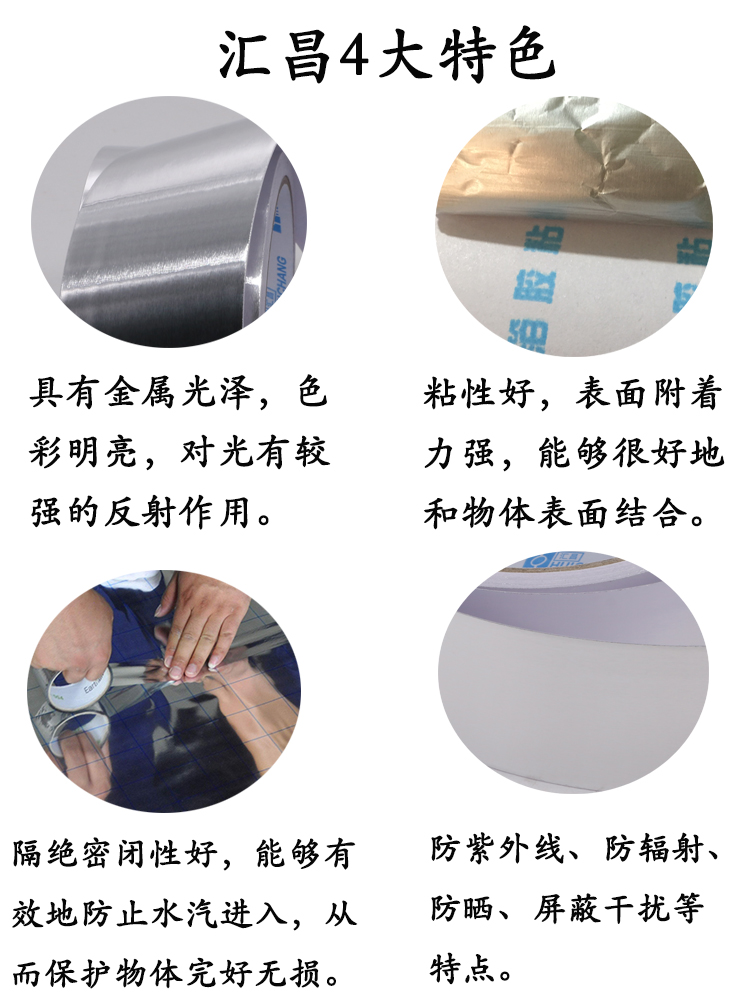 Huichang aluminum foil adhesive tape 8cm5 heat insulation high temperature resistant radiation antistatic water pipe self-adhesive aluminum foil paper range hood beauty source