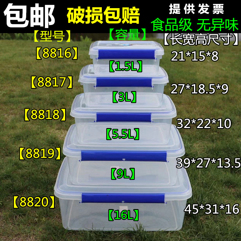 Commercial plastic large number refreshing box rectangular transparent thickened and resistant to fall food grade home kitchen refrigerator containing box