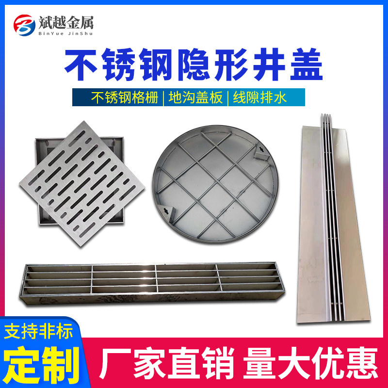 Customized 304 stainless steel invisible manhole cover 201 trench grid wire gap drain cover plate customized