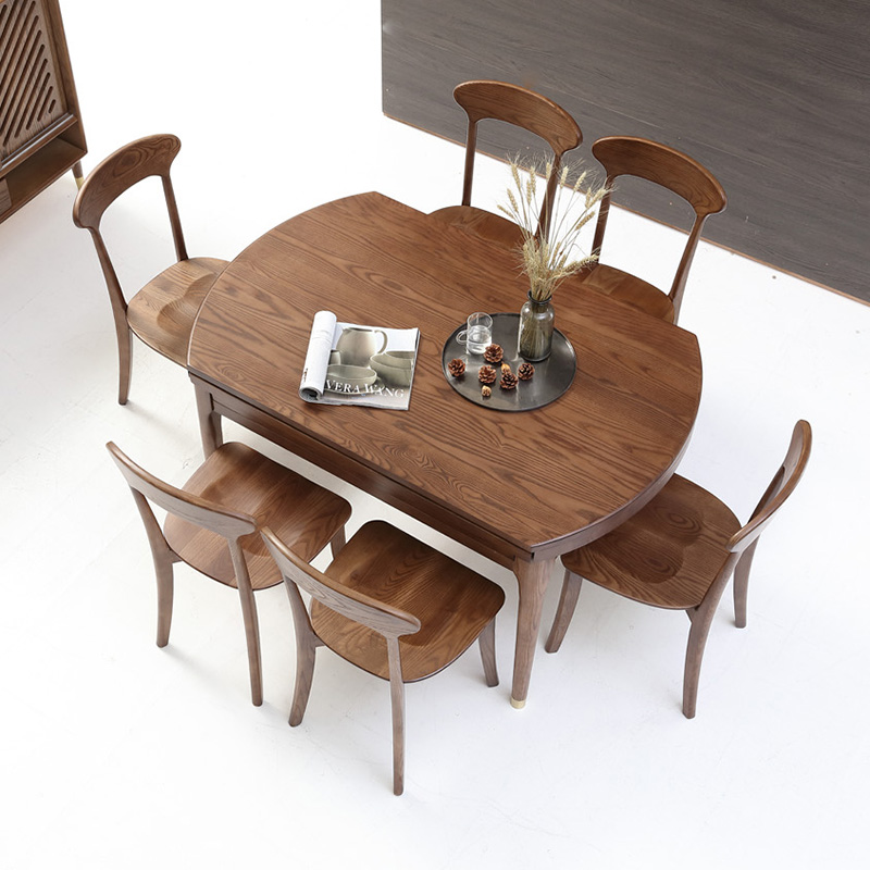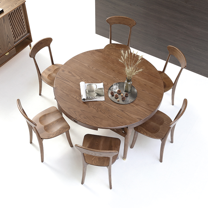 FAS North American ash all solid wood retractable dining table round small apartment folding log home Chinese dining table