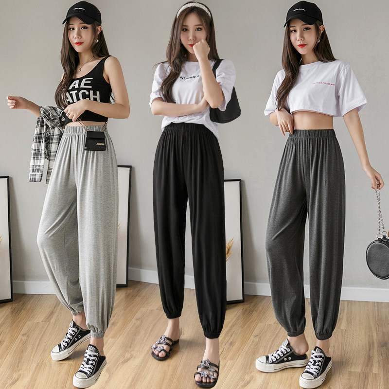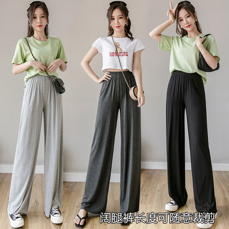 Model broad legs female summer thin high waist loose small gray cotton beam feet casual drag trousers