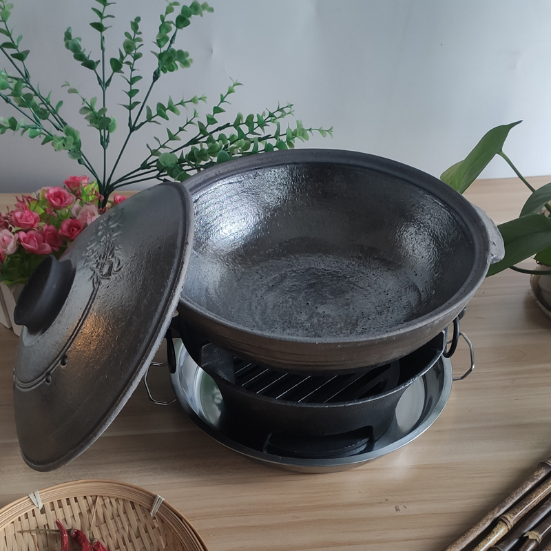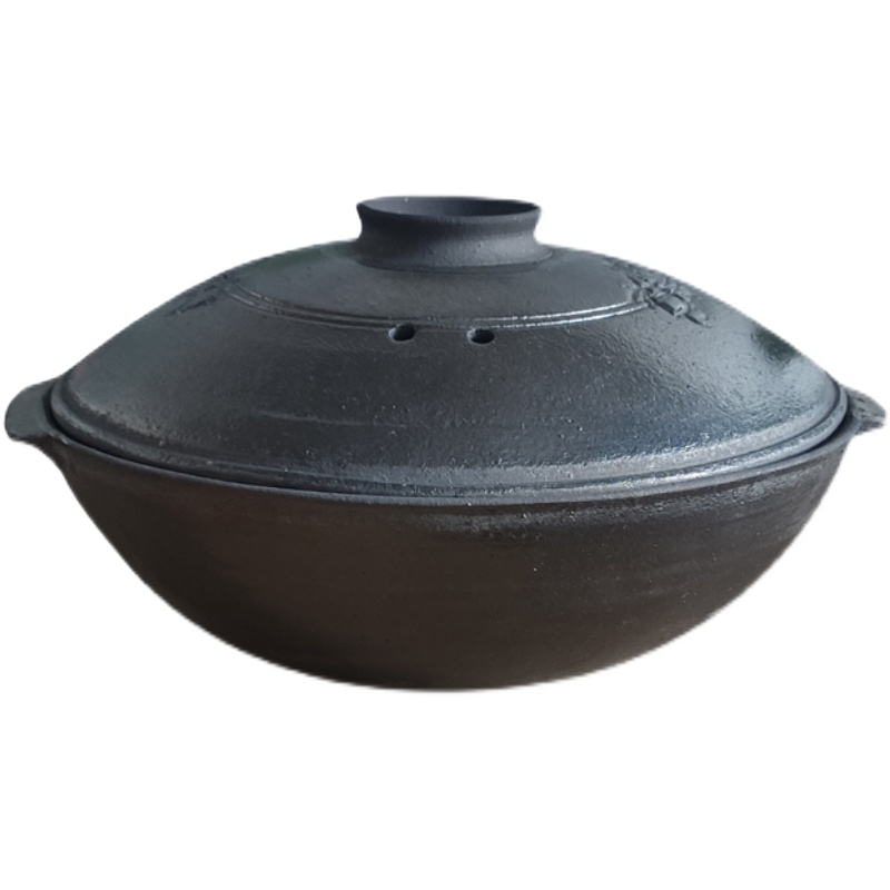 Flat-set black casserole Traditional coarse pottery Saucepan Rice Special Earth Casserole Domestic double-ear small sand pot Guangdong old fashioned shallow tile