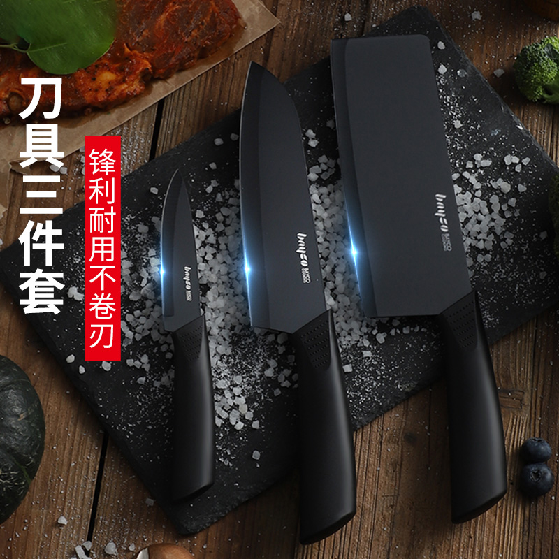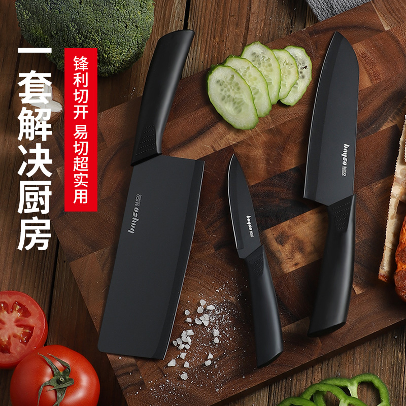 ★----- High quality ≥ ≥ ≥ Low price -----★ Blackblade Three sets (Sliced Knife Cuisine Knife Water Fruit Knife) (Anti-Rust Anti-Mold) Black Blade Slicing Knife Thickened Cutting Board (Anti -