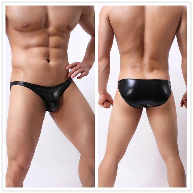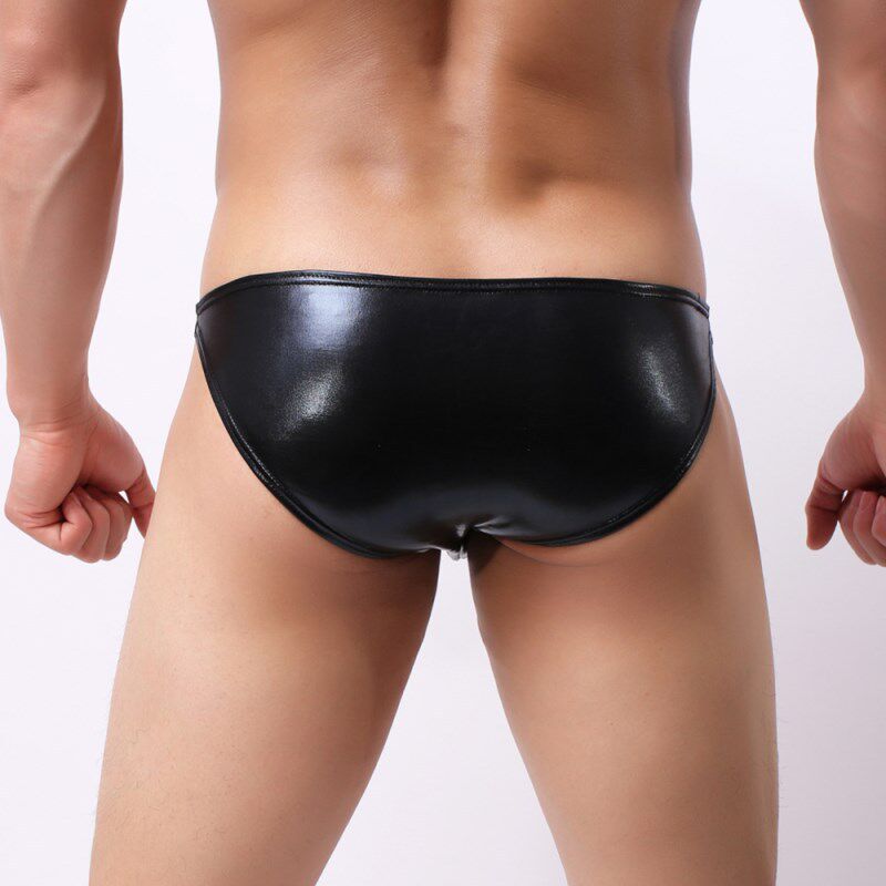 Men's leather underwear sexy gold patent leather briefs sexy macho imitation leather bronzing rivet shorts trendy men's fashion