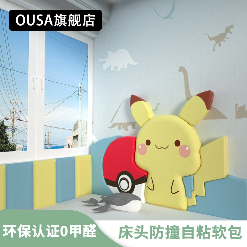 Children's room cartoon headboard soft bag self-adhesive cushion custom tatami anti-collision wall sticker soft bag anti-collision back wall sticker