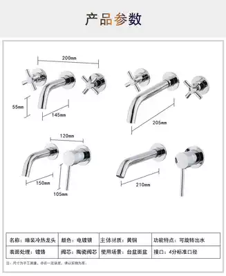 All copper concealed into the wall basin faucet hot and cold table upper basin hidden embedded wall outlet faucet short water outlet