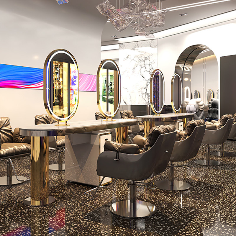 Hairdressing shop mirror table net red high-end hair salon mirror hair salon special cabinet all-in-one with lamp hair cutting mirror ironing mirror