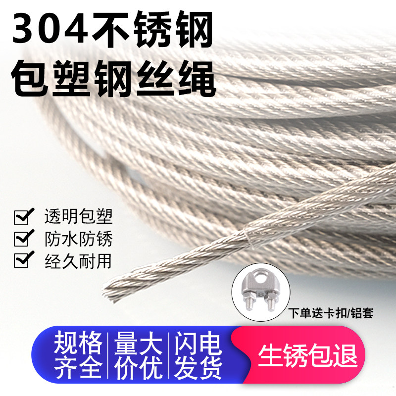 304 stainless steel wire rope plastic-coated steel wire glue-coated ultra-fine soft clothesline 1mm2mm3mm4mm5mm