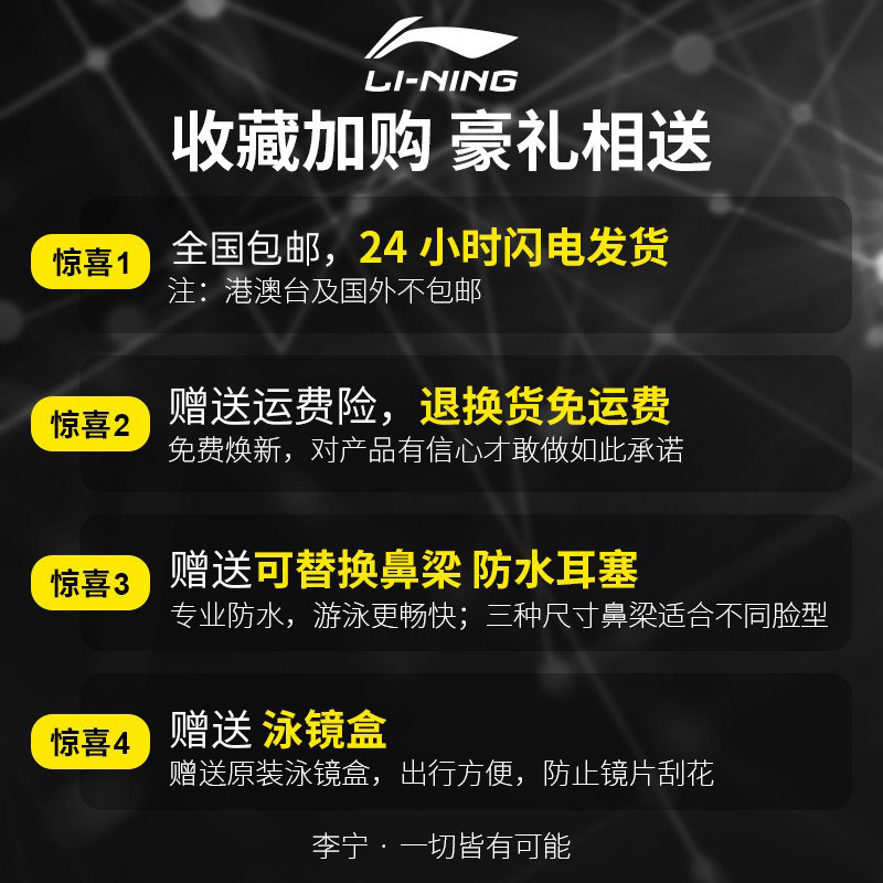 Li Ning swimming goggles waterproof and anti-fog high-definition myopia large frame swimming glasses swimming cap set for boys and girls professional equipment