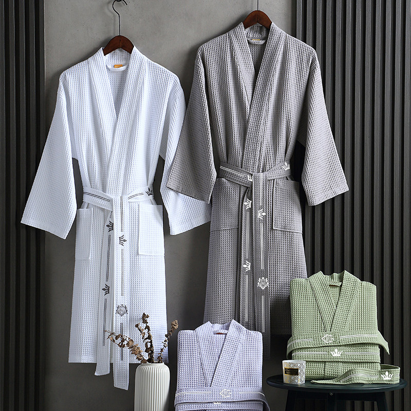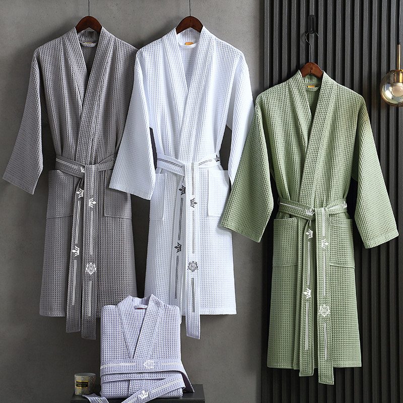 Bathrobe cotton absorbent quick-drying hotel couple's Robe Women's long spring and autumn thin bathrobe Men's Four Seasons Universal