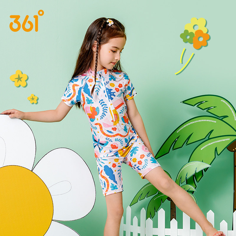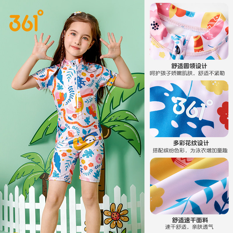 () 361 Children's bathing suit girl sunscreen conjoined short sleeve swimsuit cute baby swimsuit 2022 new