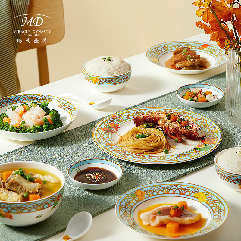 Margolonte tableware bone china Windsor Garden 28 heads 6 servings home retro European bowls and dishes gift box set