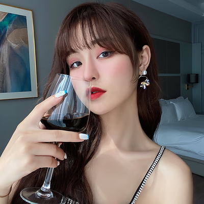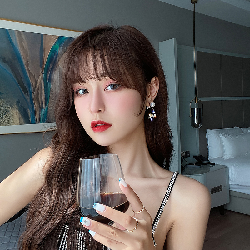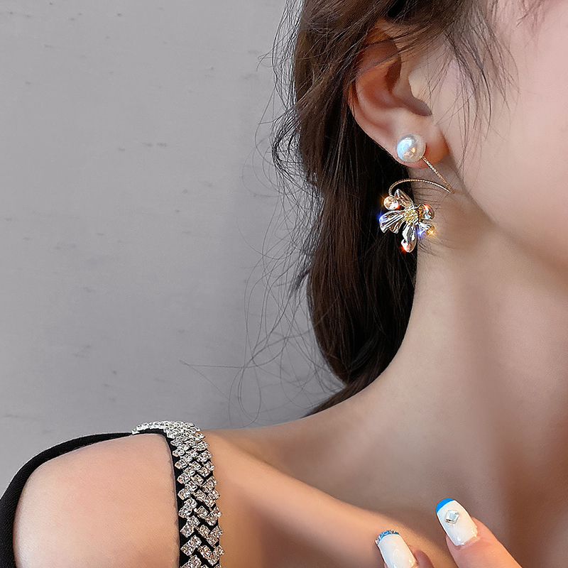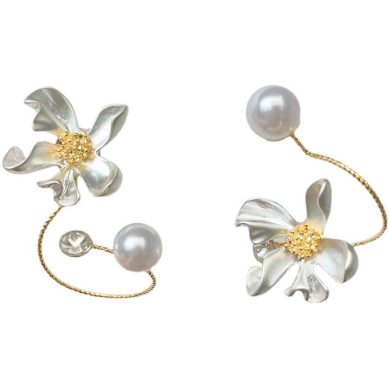 Hong Kong niche design sense 925 sterling silver needle asymmetric pearl diamond earrings 2022 new trendy ear needles