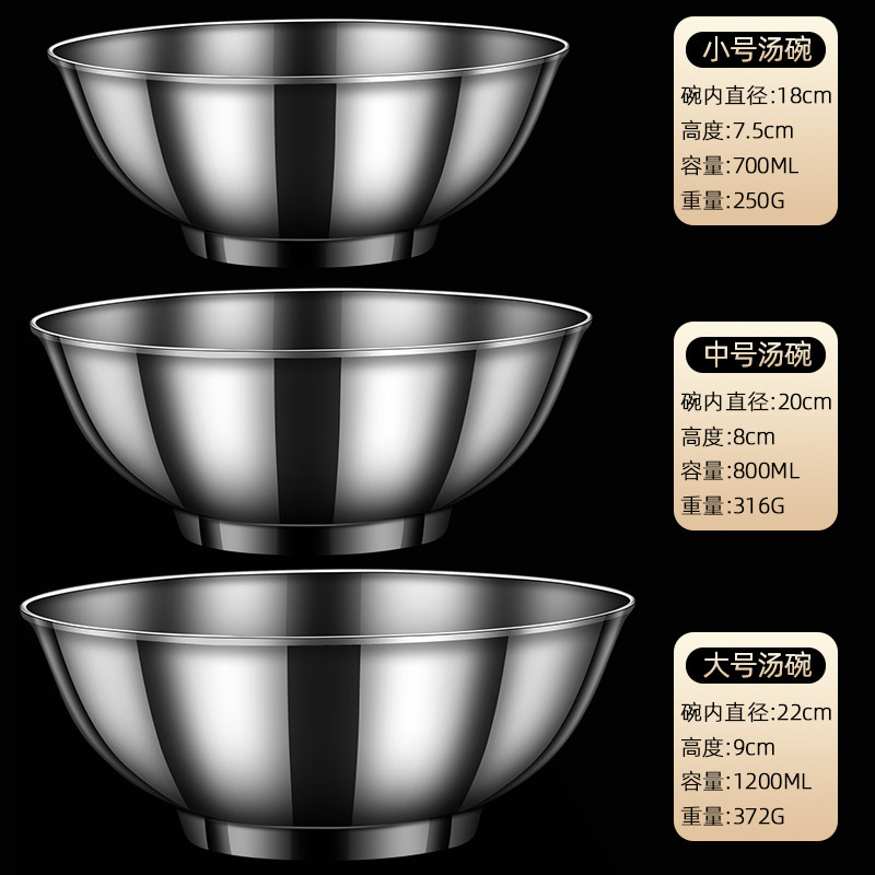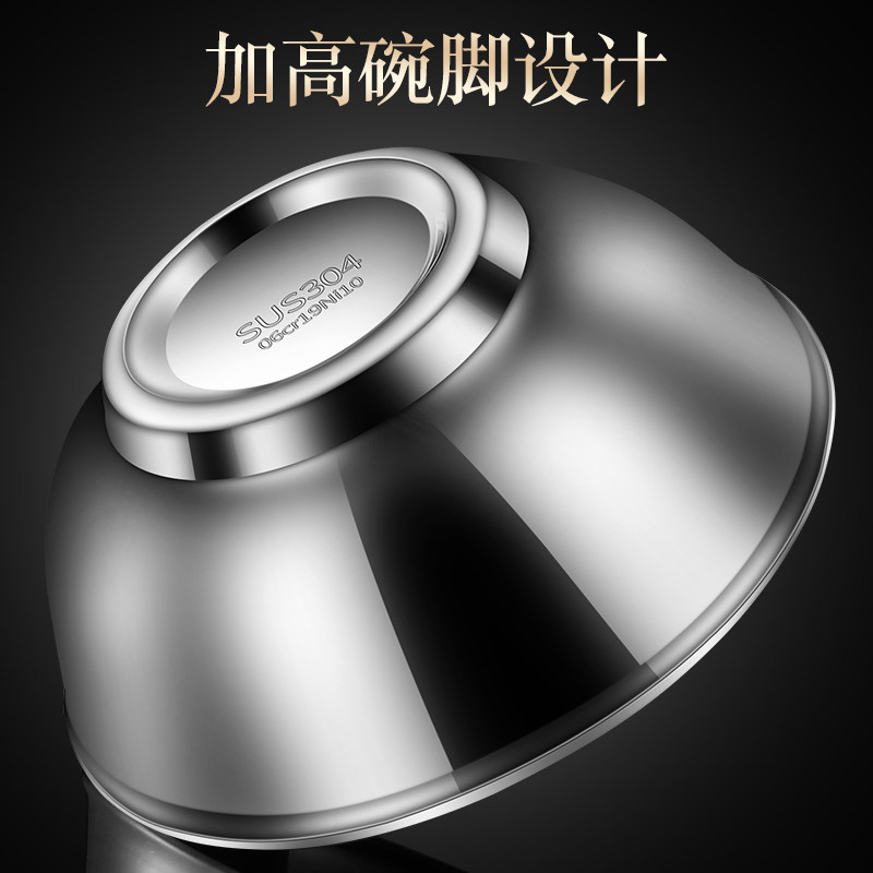304 stainless steel bowl Male instant noodle bowl Tableware set Soup bowl rice bowl Ramen bowl Household noodle bowl Canteen rice bowl