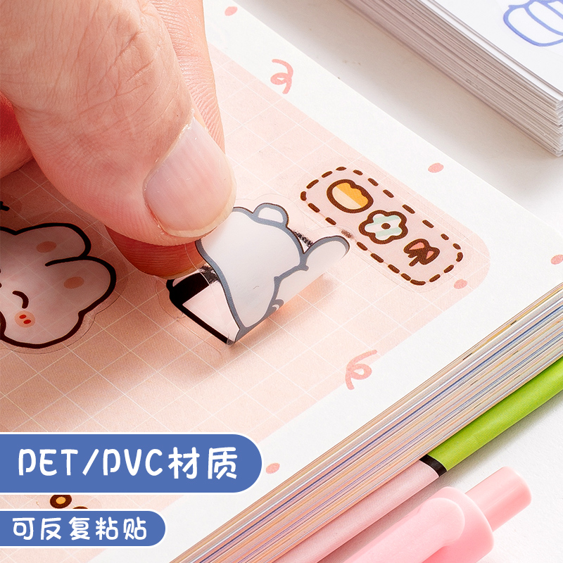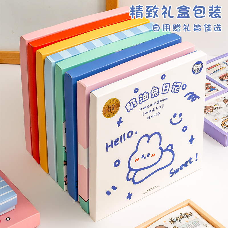 100 Cream Bear Rabbit Hand Book Sticker Hand Book Sticker Set Sticker Decorative Small Pattern Cartoon Sticker Children Girl Cute Girl Heart Japanese Girl Ins Style Small Size Material Box