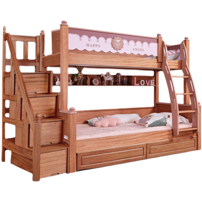 Solid wood bunk bed bunk bed children's bed princess bunk bed two-story bed mother bed high and low bed walnut wax oil