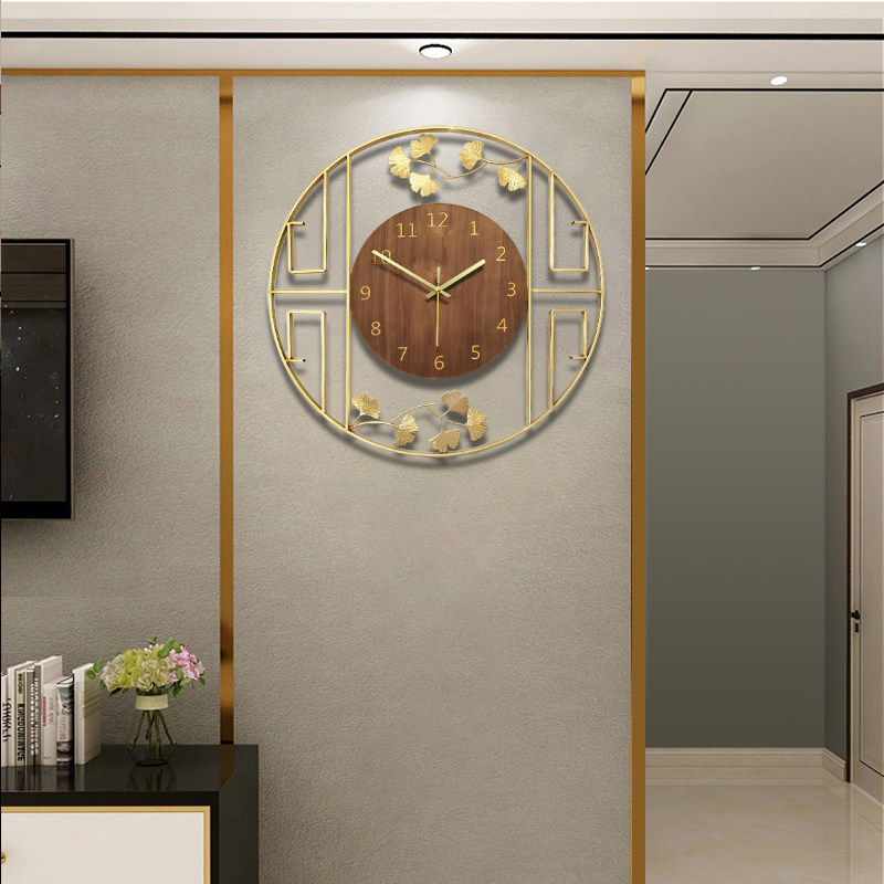 New Chinese style watch hanging wall Living room Modern home light extravaganza Ginkgo Leaf Art Metal Creative Bell Accessories Fashion Hanging Bell