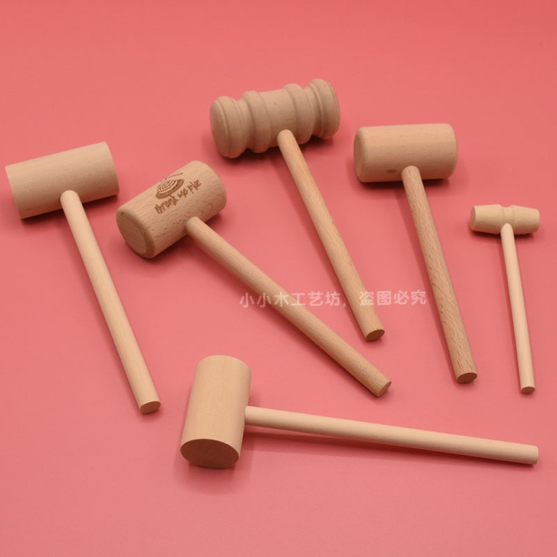 Solid wood mini hammer knock planet cake wooden hammer flat head small mallet children's toy grasping week hammer smashing golden egg hammer