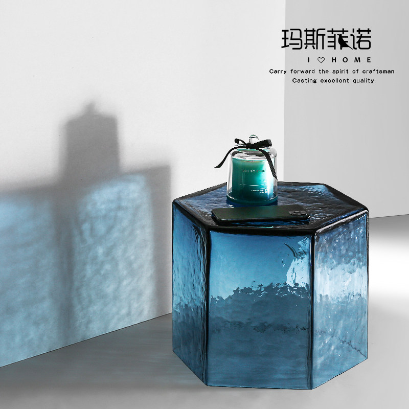 Masfino Modern White Creative Glass Tea Several Living Hall on Advanced Swing Parts Blue Transparent Side Several Sofa