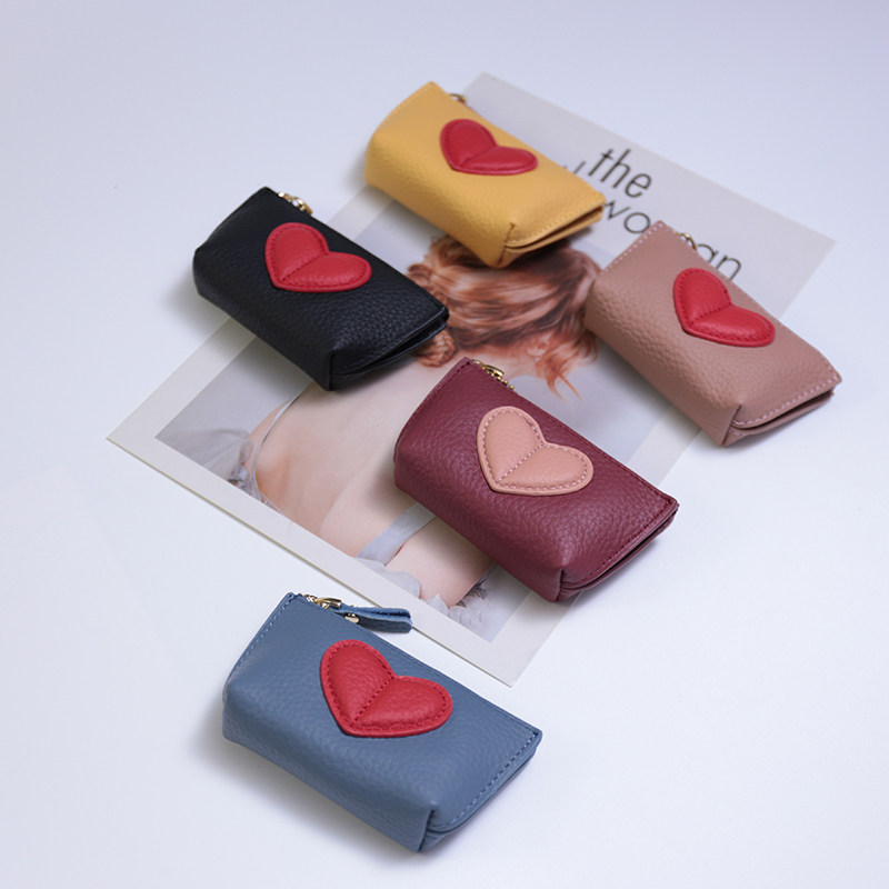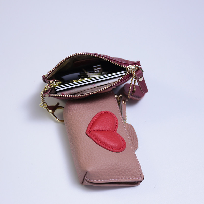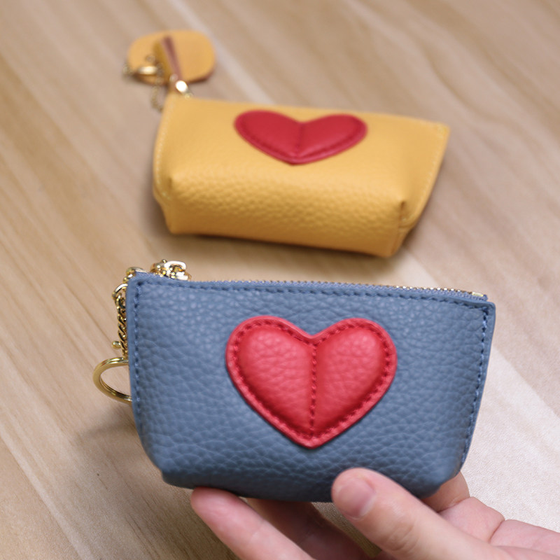 2022 Fur Leather Mini Chain Woman Short Han Edition cute new love key button coin small wallet