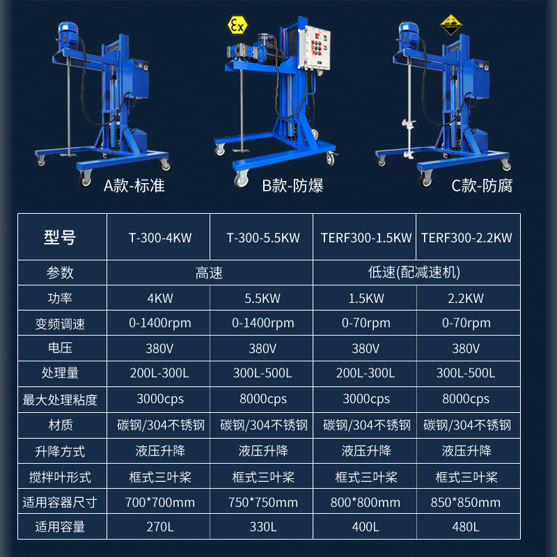 Body carbon steel baking varnish or stainless steel-photographed Remarks High speed standard subsection power 4KW (200-300L) high speed standard subsection 5 5KW (300-500L) low speed standard paragraph