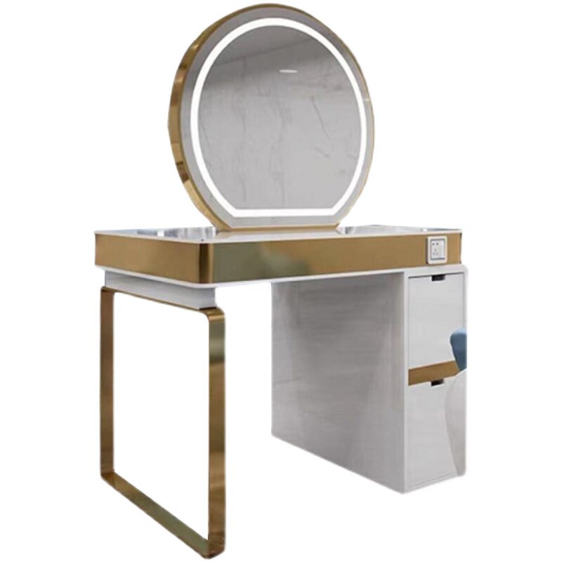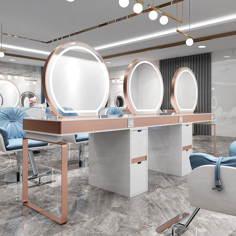 Barber shop mirror table light luxury high-end hair salon with light hairdressing mirror stainless steel European-style photo studio makeup perm dyeing mirror table