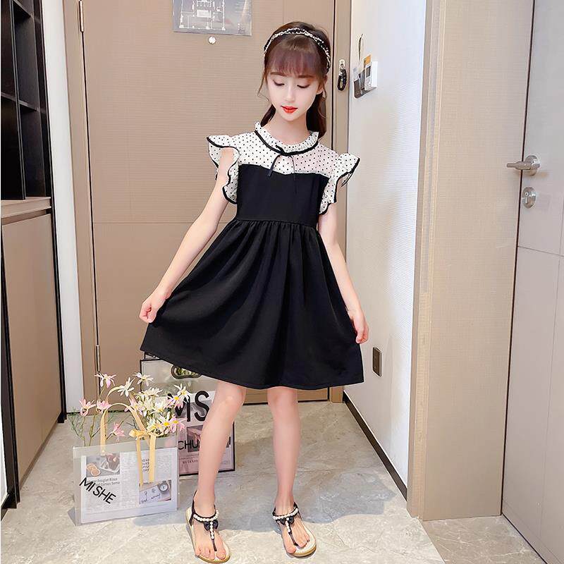 Korean girls mesh dress summer dress 2022 new girl Western style polka dot stitching fashion princess dress
