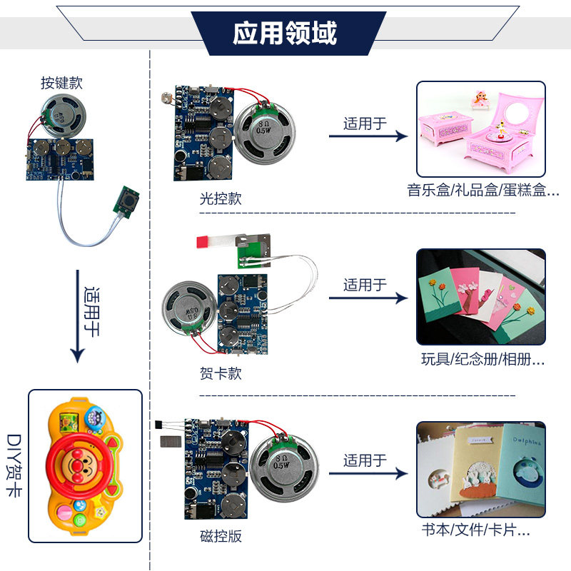 Button version (short press to play once) button version (long press to play in a loop) optical control version greeting card version magnetic control version