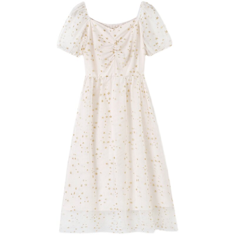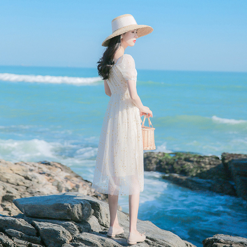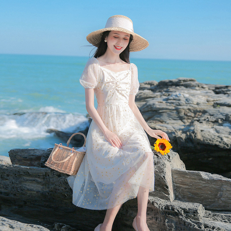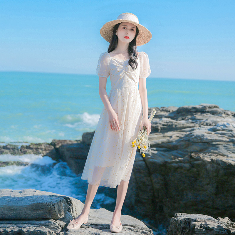 Valley Seven GUQIQI sweet and broken floral dress 2022 Summer New style sweetened web yarn collection waist display slim long dress-Taobao