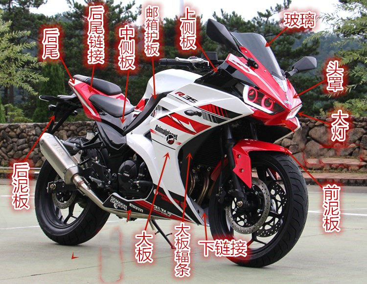 Transparent milky white beige white white black color red black mirror glass hood Left big plate Right big plate Front mud plate upper side plate Middle side plate lower guard plate Rear tail Rear tail hyperlink fuel tank instrument cover Fuel tank guard Living room