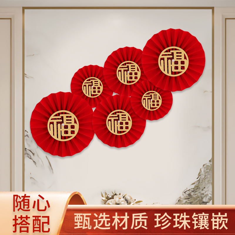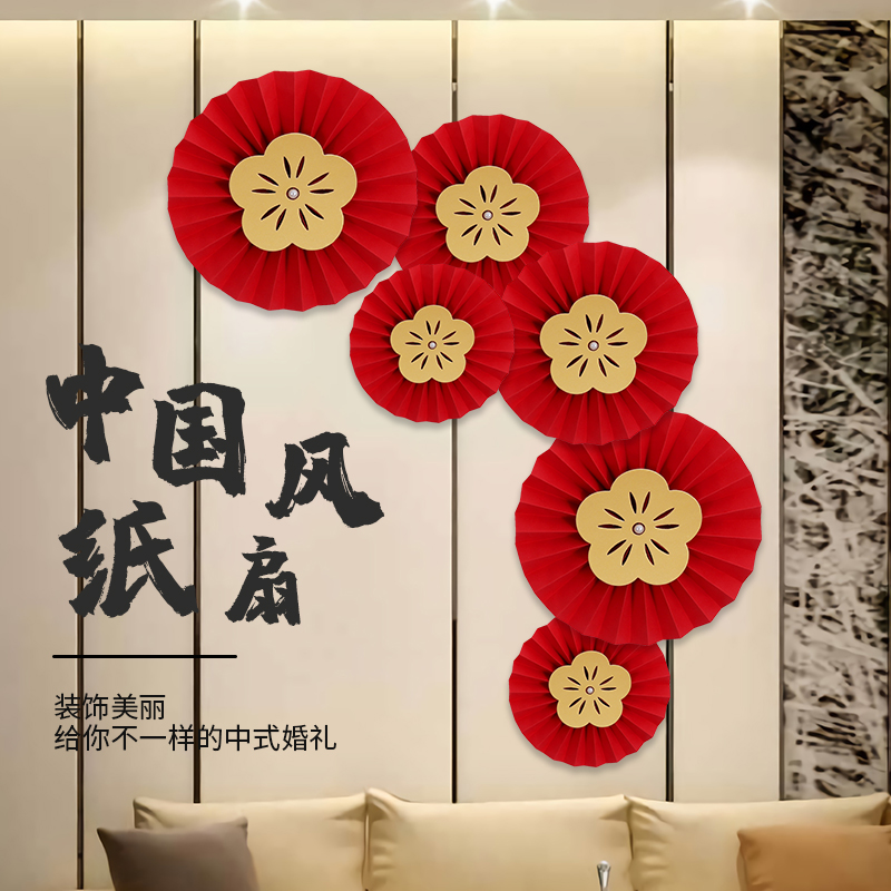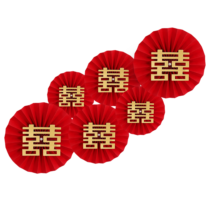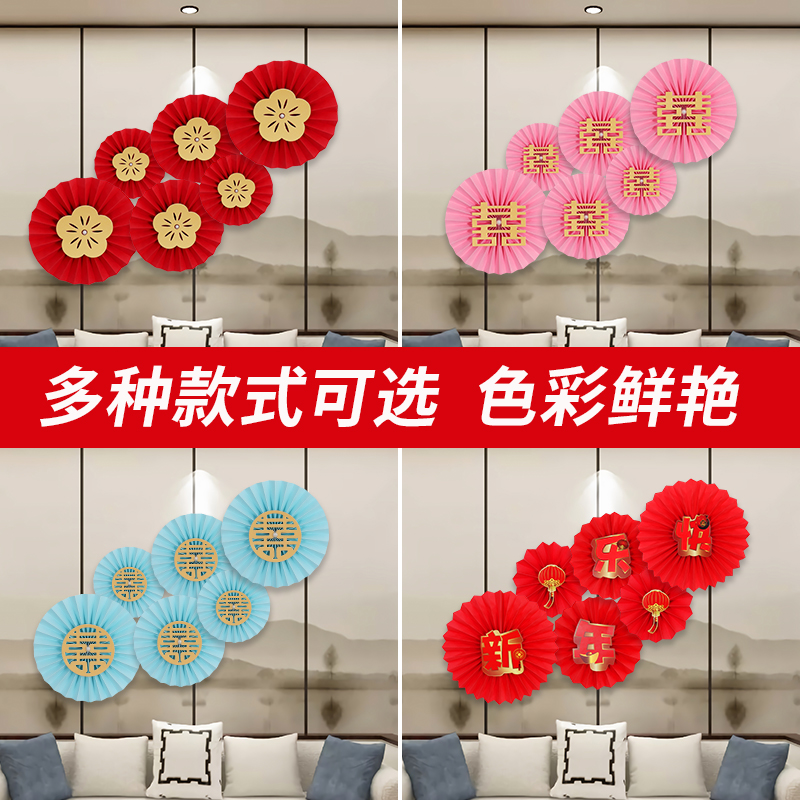 Wedding supplies Daquan paper fan happy word door wall stickers bedroom window flower wedding gifts wedding room layout celebration decoration set