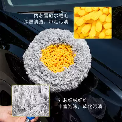Newly upgraded fine velvet chenille brush head (softer and more absorbent separate brush)-blue car wash towel car wash liquid sponge (cleaning set)-blue car wash brush towel car wash liquid