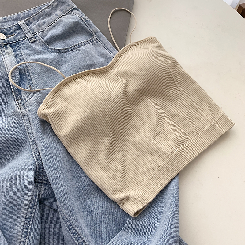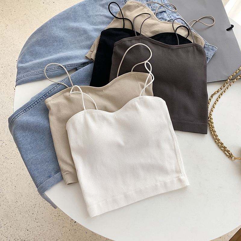 A7seven summer beauty back white sling top female inner chest pad bandeau elastic knitted short vest tide