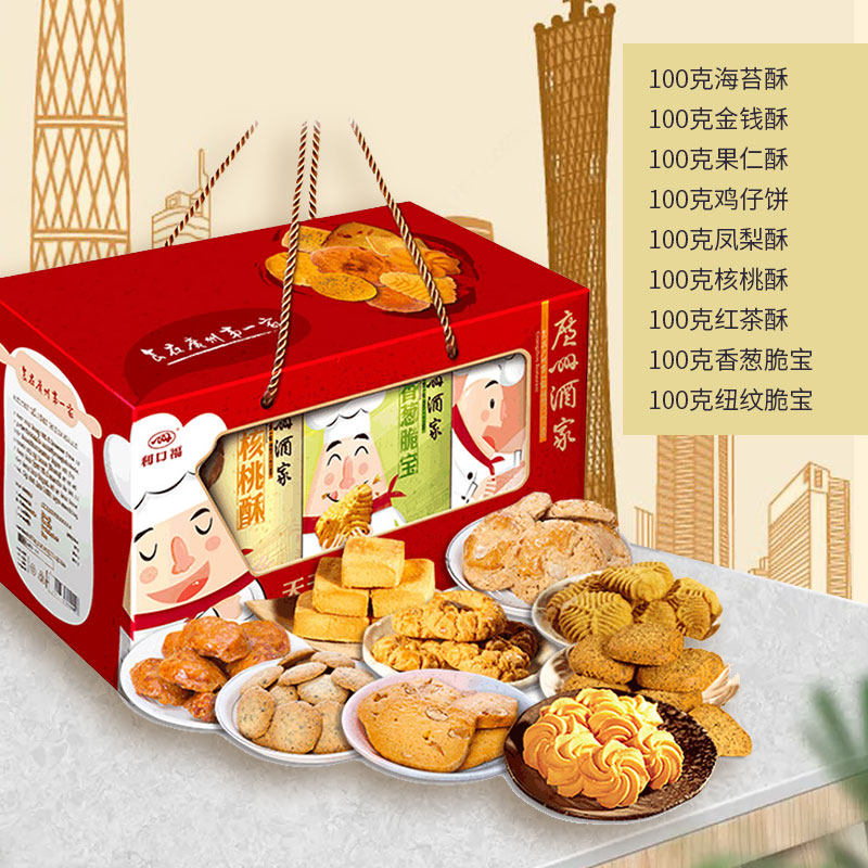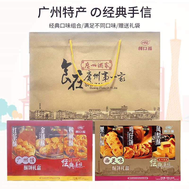 Guangzhou Wine Home Guangdong Specialite Gift Bags Send Gifts to Guangdong-Hong Kong-Macao Handletter Shenzhen High-end gift box cakes snack refreshments