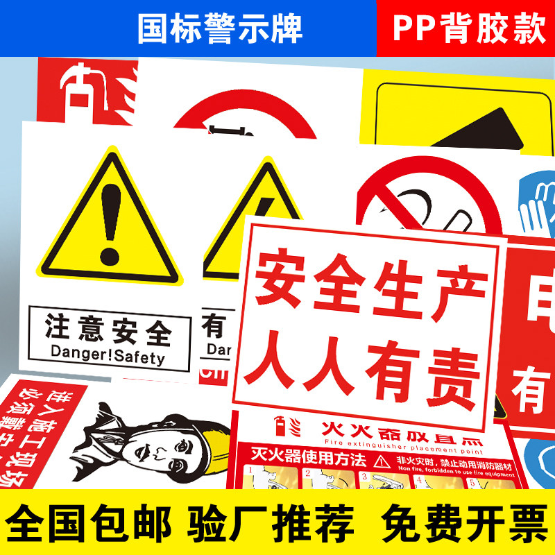 PP Back Glue Production Heavy Ground Safety Identification Card Warning Sign Distribution Box Monitoring Warehouse Fire strictly forbidden Tobacco fire prompting card beware of electrocution hazard production workshop Site slogan placard